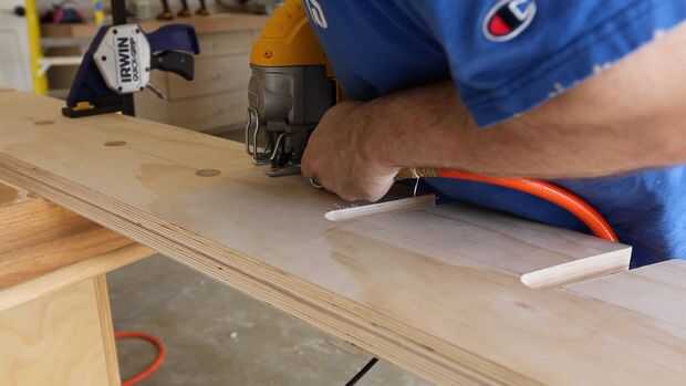 Después de que haya perforado los agujeros, es un proceso bastante sencillo desde aquí. Utilice una sierra de calar para cortar ranuras de 20 grados de conexión a los orificios que ha perforado. Esto va a dejar con una ranura, con una espalda redondeada. Me gusta usar aire comprimido cuando se ejecuta una sierra de calar para mantener el polvo fuera de mi línea. Simplemente sostenga la boquilla frente a la sierra como vas.
