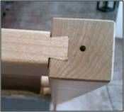 La espiga angular se corta para ajustarse a la ranura usando el mismo router grado 7 bits.