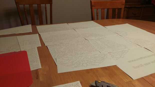 Una vez que todo se corta y tienes una copia de las piezas, recomiendo para colorear en el interior haga los orificios con un lápiz para no perforar accidentalmente en el tablero como usted comienza a conseguir más confianza en la prensa del taladro.