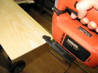 Los dos paneles laterales alrededor de la plataforma central tendrá n surco en su lado hacia el espacio central. Por lo tanto, el panel posterior central debe ser reducido. Debe tener el ancho exacto de los estantes.