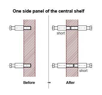 ACTUALIZACIÓN (19 de enero de 2012): como sugerido por Balafre, una solución aún mejor es acortando cada tornillo de los paneles centrales de 2 mm (en lugar de uno a uno, por 4 mm).