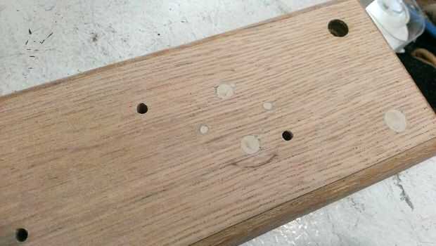 Para remediar la situación, fui sobre todo con una capa de la pintura de látex brillante interior que usamos para el trabajo de ajuste en toda la casa. Luego ligeramente con un trozo de papel de lija, para angustia de la pieza y eliminar algunos de los blancos dejó el espectáculo amarillo a través de pasó.