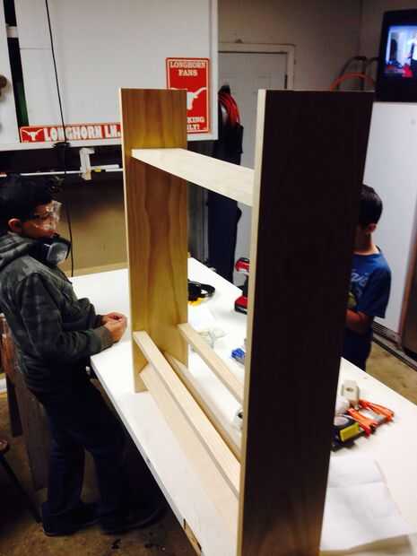 Para este paso en particular, mis dos ayudantes (mis hijos) consiguió delante de mí y montado sin tomar fotos. Les gusta ayudar,:-). Básicamente alinean las tablas con las localizaciones dibujó sobre los montantes y había montado todo, pero se puede ver la orientación/colocación de los tableros. Debe dar cierta claridad, espero. Por suerte ellos no aplican pegamento en las superficies de contacto antes de todo atornilladas. Desmontado todo en orden las muescas del taladro en el 1 x 6 y 1x2s para aceptar las varillas y mantener de manera organizada, siguiente paso...