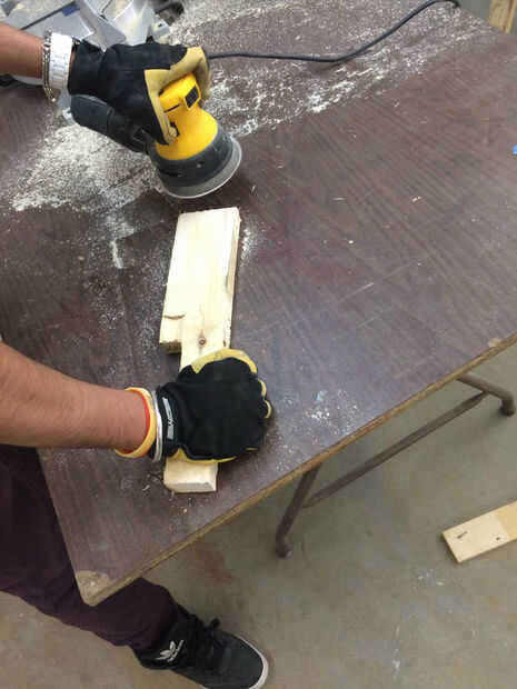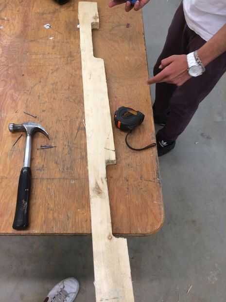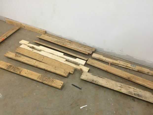 Rompimos la paleta en trozos individuales mediante el uso de un buster de la plataforma. Después de desmontar elegimos las piezas que iban a utilizar y sacó las uñas y después de eso nos comenzaron a cortar en tamaños requeridos si es necesario utilizar la sierra. Después de tener todas las piezas empezamos a lijar con una lijadora de darle a la madera un acabado liso.