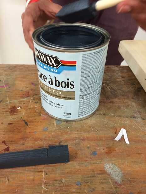 Después teníamos todas las piezas con hay tamaños requeridos comenzamos a pintarlo. Para la pintura que empezamos con una capa de la mancha. Después de poner la mancha antes de limpiar dentro de 5-10 segundos de la aplicación y pintadas de una capa de mancha pronto después de eso. Similar a la mancha limpiarse la mancha extra para conseguir la textura de madera. Se utilizó tinción de color gris carbón para el proyecto. A continuación dejamos las piezas en seco y al final aplicamos una capa fina de acabado.