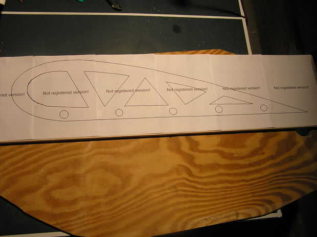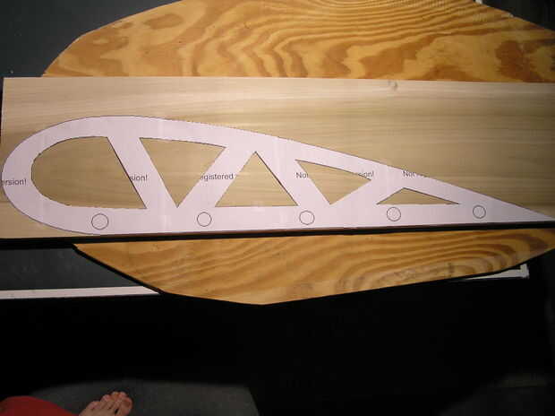 Imprimir la superficie de sustentación en tamaño de banner, cortar con un cuchillo x-acto y rastrear a su madera.