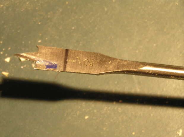 Taladrar los agujeros para las clavijas, marqué la profundidad quería los orificios con un rotulador sobre la broca y luego perforados hasta ese punto.