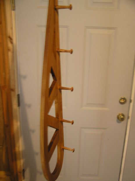 La plataforma del techo con un periódico debajo de la caída y aplique el tinte. Había utilizado una capa de tinte, porque me gustó el color después de la primera capa. Añadir las clavijas (previamente teñidas) con algún pegamento de madera mientras la mancha está todavía mojada en el estante para facilitar la adherencia. Luego aplicar poliuretano, utilicé tres capas ligeramente lijado entre cada una. Por último, aplicar alguna cera en pasta para darle un buen acabado duro.