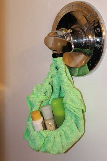 El estante se hace de una toallita para que se sequen en campo pack o bolsa de baño de mi hijo. Guarda cosas del piso que es más sanitaria que la alternativa. Lo mejor de todo si se ensucia, puede ir toda la bolsa en la lavadora y secadora.