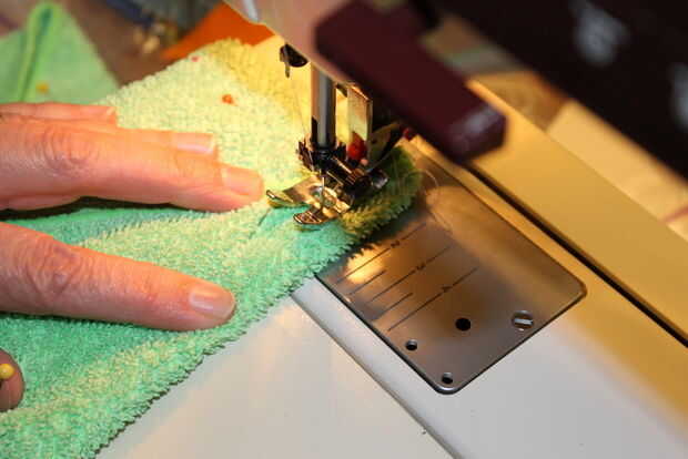 Coser a cada lado de margen de costura de 1/2". Dejar las esquinas libres para que pueda subir el paracord alrededor de toda la bolsa.