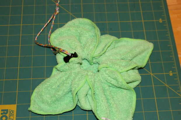 Llene su bolsa con artículos de ducha y cincha de cierre de la bolsa.
