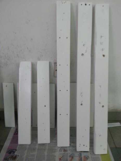 Corte la madera a la longitud requerida y arena del papel hacia abajo. Consejo: Si desea que el estante de especia para caber perfectamente entre encimera y armario como la mía, se corte 2cm más largo. Entonces puede limar para perfeccionar la longitud. Si te gusta pintar.
