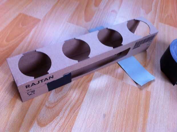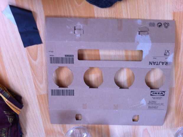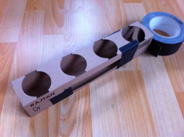 Después de desembalar los vidrios, doble vacío lleno otra vez. Los agujeros diminutos van por debajo de la cara con las muescas, presionándolos en los agujeros te para fijar la caja como un cubo nuevo. Use cinta para fijar mejor.