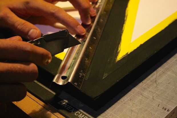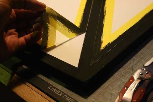 Ahora el trabajo satisfactorio de pelar la cinta de enmascarar para revelar las caras acabadas.
