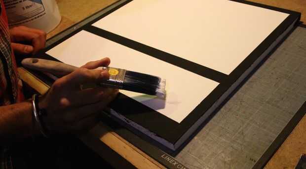 Pintura negra en la parte exterior de su enmascaramiento en cada tablero. Comprender la orientación de cada tabla le ayudará a averiguar qué aristas necesitan ser pintado.