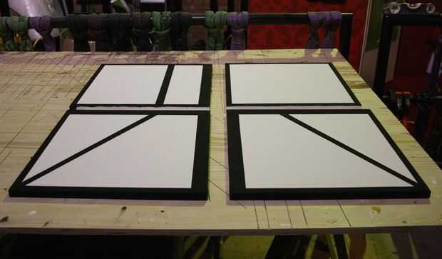 Ambos tableros de 438 x 438 mm necesitan ser pintado negro en los dos bordes frente a frente a las fronteras de 36 mm.