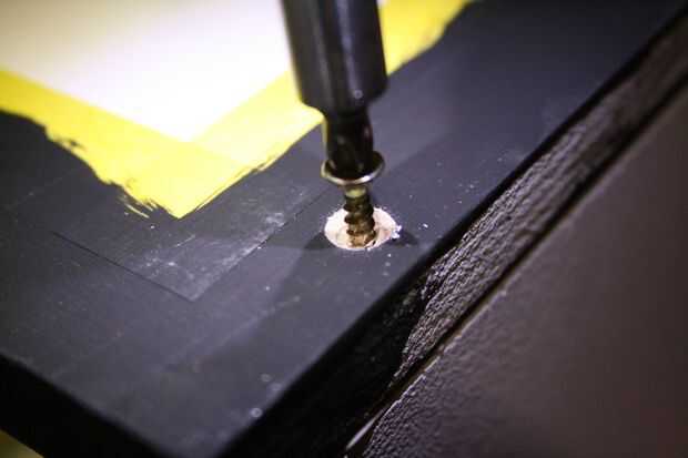 Una vez que esté ensamblada puede relleno el contador hundido tornillos en la parte superior e inferior de la pieza. Al ras de la arena y pintura negra.
