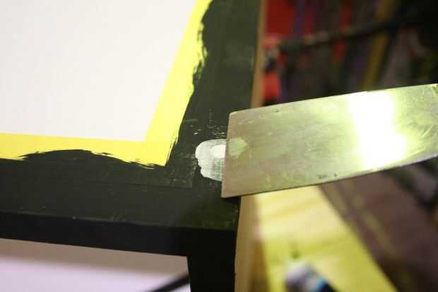 Puntuación de la cinta de enmascarar otra vez con un cuchillo afilado y una regla y luego desprenderse.
