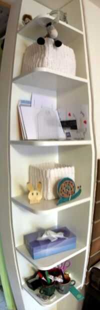 I'm a big fan of shelves. Mis hijos tienen una cada vez mayor colección de libros y estantes más en orden. Me inspiré por Instructable otro similar a mi diseño. Sólo hacer una búsqueda de "estante de la esquina" y lo encontrarás. Mi idea aunque