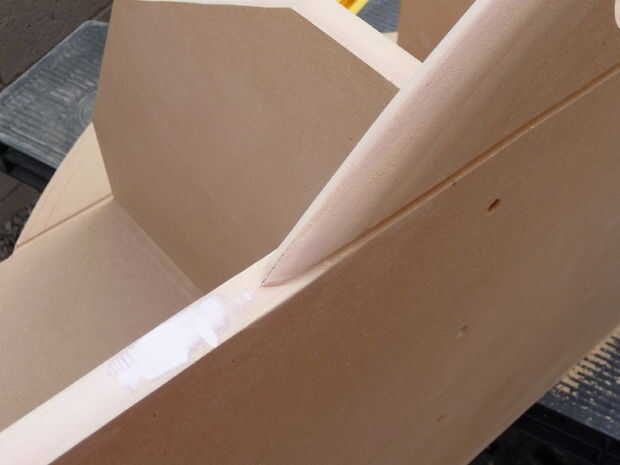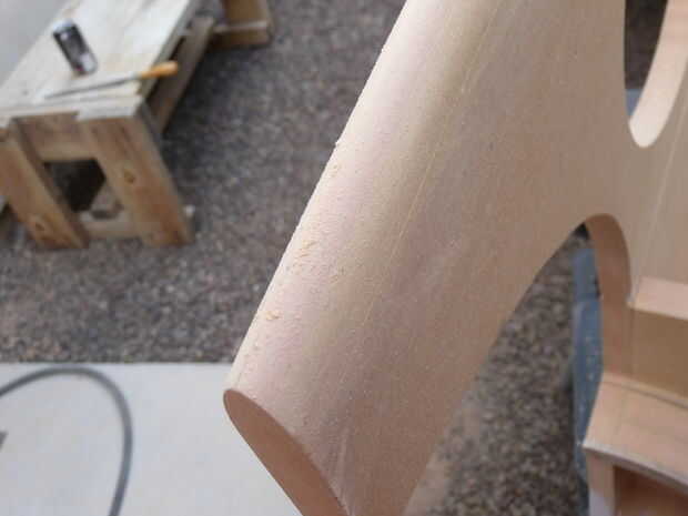 Los bordes exteriores de las aletas de aspecto torpes y necesitan ser refinado. Comience por dibujar una línea en el centro del borde exterior de la aleta. Luego trace una línea, en ambos lados, 1/4" lejos del borde. Dibujar otro 3/4" lejos. Archivo o erupción de la línea central a la primera línea de la arena usado arena la segunda línea como guía para una curva agradable. Especial atención tendrá que aplicarse a la parte superior de la aleta es donde se encuentra con el cuerpo del cohete.