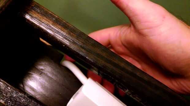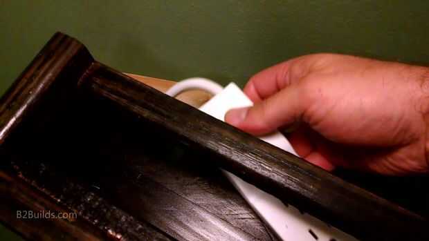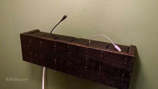 Una vez la tira de la energía en el lugar, enchufé mi cargadores de dispositivo. Aunque era un poco apretada dentro, caben bien. Los extremos sueltos de los cables del cargador entonces fueron funcionados a través de las ranuras en la parte superior para que sean accesibles en la plataforma.