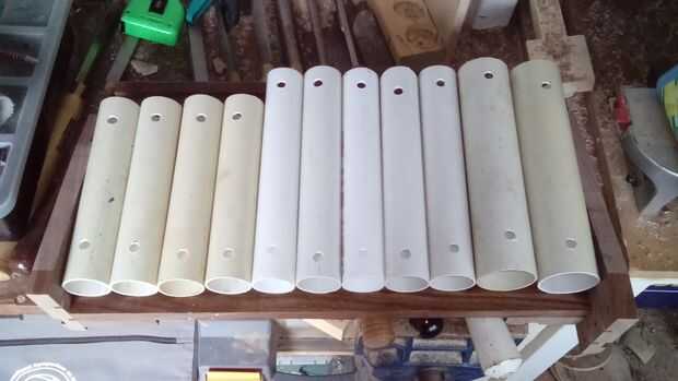 Los tubos están montados en el tablero trasero dejando un espacio entre el Banco y el fondo del tubo. Si no haces esto los tubos llenan de virutas y son muy difíciles de vacío. (lección aprendida del primer estante)