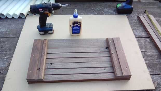 Después de determinar la longitud necesitada para alinear los tubos de la madera fue cortada a la longitud. Usé dos tramos de ancho bordeando y uno de los zócalos más estrecho para obtener la profundidad necesaria para la parrilla.