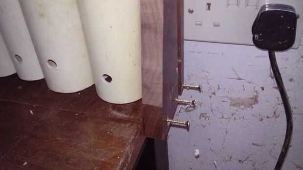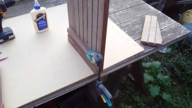 Las tres piezas fueron conectadas con tableros cortos atornillado y pegado a la espalda. Estas tablas fueron en ángulo en la parte superior y también proporcionará material adicional para la fijación de las partes.