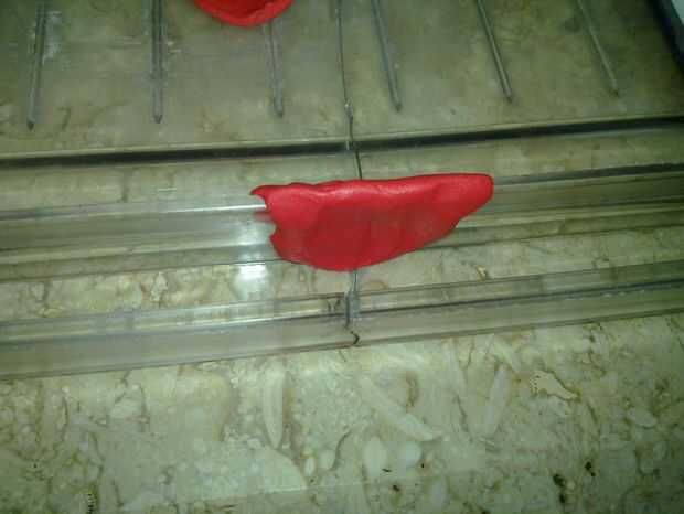 Estante de la nevera rota de fijación con SUGRU. (2 / 4 paso)