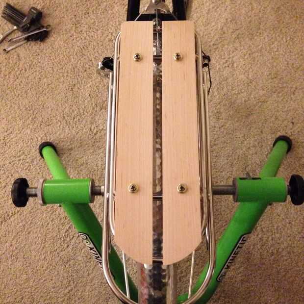Instale los tornillos y coloque las tarjetas en el nivel para comprobar el ajuste. Si el rack cuenta con esquinas curvas, puede rastrear este contorno en la madera y utilizar una lijadora para formar las esquinas de la madera.