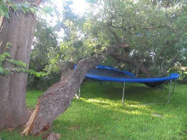 Aquí le damos una idea para trampolines demolidos. Utilizar las piernas para crear una leña parrilla. Tuvimos un miembro grande romper de un árbol del roble del poste durante una tempestad de truenos típica de Texas Central. Aterrizó justo en nuestro trampolín de nuevo!  Una de las bases de la pierna fue aplastada, así que sólo tuve suficientes piezas para hacer una parrilla.