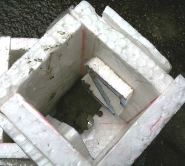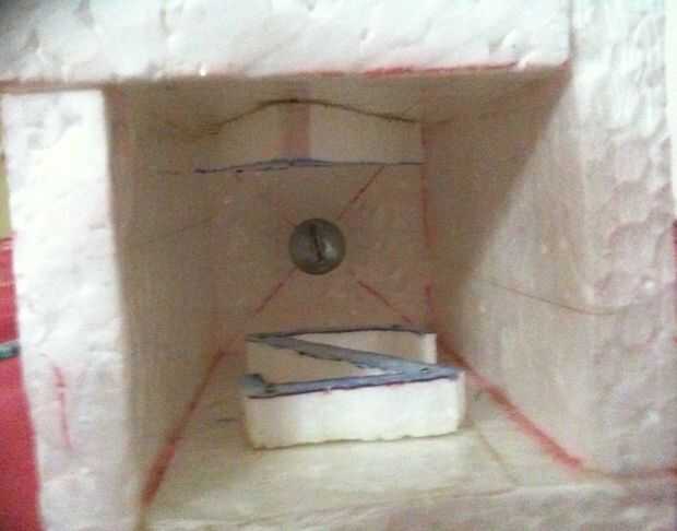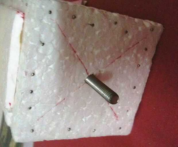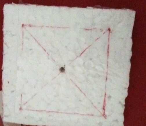 Luego sus cartas con un cortador de hotwire y pegarla en la imagen del espejo a los lados del interior panel. Marque el cuadro de fondo de espuma de poliestireno... encontrar el centro y haga una marca. Pase el perno a través hasta la mitad y sujete la caja cuadrada.