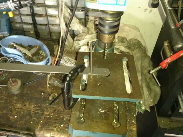 A continuación he marcado donde los agujeros deben fijar a la pared y utilizan el taladro de la prensa y pinza para perforarlos.