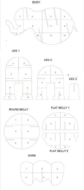 Necesita imprimir forma de elefante en papel del tamaño de elefante como quieras. Esto incluye elefante cuerpo 2 piezas, piernas grandes 2 PC, patas medianas 4 PC y piernas pequeñas 12 PC, redondo vientre 2 PC del vientre plano superior 2; bajo vientre plano 2, PC oídos 1