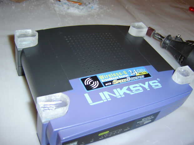 La clave aquí es conseguir 4 de estos montados en las ranuras en la parte superior del router. Esto toma algún tiempo para arena hacia abajo y conseguir el ajuste perfecto ** no hacerlos demasiado apretado ** una vez que tengas los 4 seleccionados y arena para apilar el resto (5 por pierna en mi caso) sobre cada pierna. puse un punto de pegamento entre las capas de modelo ver y fijar las cuatro patas con 1 almeja.
