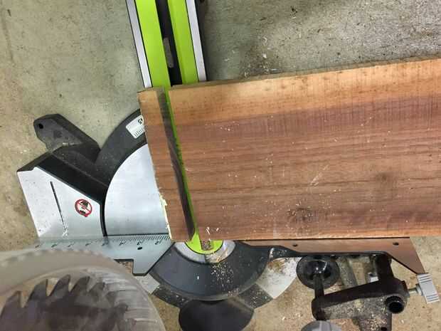 Considera cortar los extremos de mi estante de madera con una sierra de cadena para darle un aspecto mucho más áspero, pero más tarde decidió que sería demasiado áspera para lo que estaba imaginando.