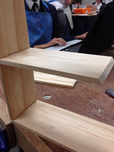 Armar el L y poner las piezas respectivas marcar qué partes de los 550 mm x 90 mm y 200 x 90 mm deben cortarse. Para ello, que la situe en 550 mm x 90 mm L dos, luego inserte el 200 x 90 mm y deslizarlas hacia el centro hasta que no pueden ir más lejos, luego marcar lo que necesita ser cortado para caber en el L Tenga cuidado como el 200 x 90 mm que ambos necesitan ser cortado en un ángulo.