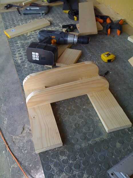Coloque los pies a uno de los mas grande redondeado madera y entonces coloque la segunda, parte estrecha a los pies de la te, la distancia es la misma de la madera su uso.