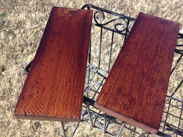 Mientras que la mancha se secaba empecé a hacer las puertas del armario. Después de cortar las puertas con la sierra caladora, usé una escofina para recortar al tamaño correcto para caber y enarenó. Después de yo les manchadas al igual que con el resto de la parrilla. Mientras estaba en él también mancharon las perillas de madera consiguió.