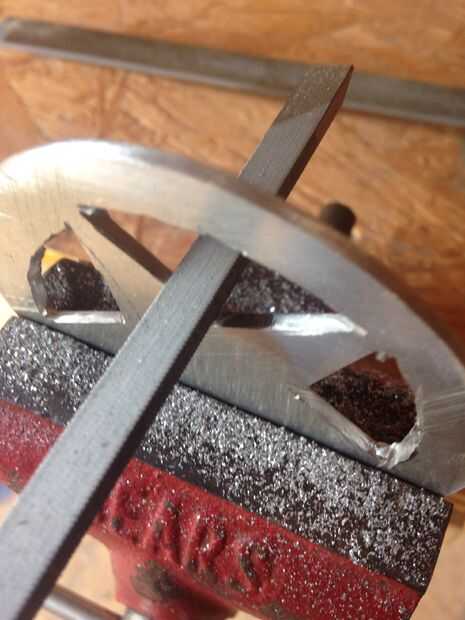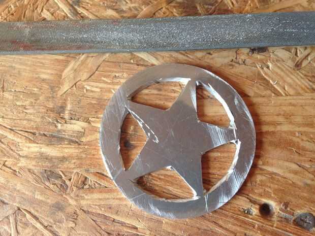 Debido a corte de la estrella hacia fuera con el Dremel es realmente áspera. Pero después de algún tiempo con varios archivos en el vicio yo quise limpiar hasta e incluso. Usé una lima plana regular, un archivo ovalada plana, un pequeño archivo triangular y un pequeño archivo plano / oval. Había terminado con un lijado y un cepillo de alambre en la Dremel.