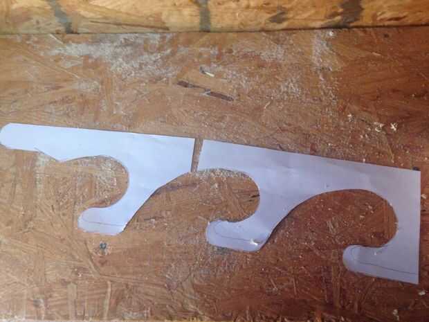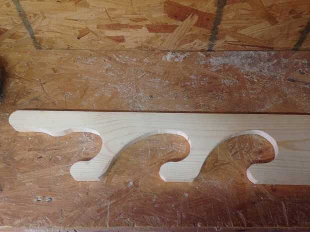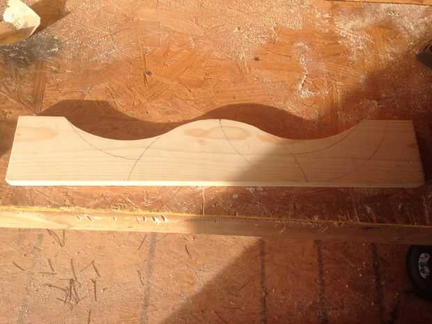 Para hacer la pieza superior decorativa era capaz de usar un cubo de 5 galones para crear a curva y recórtalo con la sierra caladora. Para crear los dos muros que sostienen las armas, imprimí y hecho una plantilla para trazar la curvatura. Entonces corté ésos hacia fuera con el rompecabezas también.