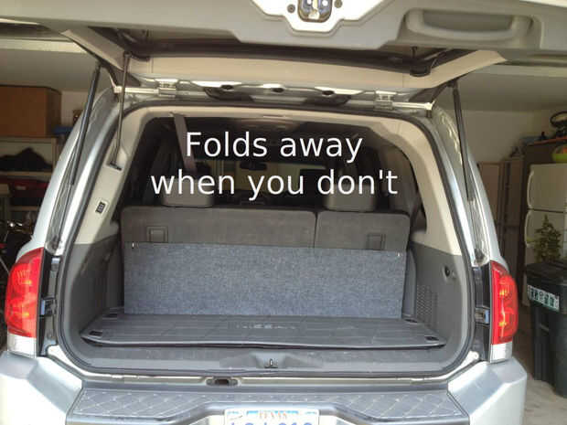 Mi SUV es el tercer asiento de fila me da un montón de espacio para mis hijos y sus amigos, pero lo hace para un área de tronco corto. Eso deja dos opciones cuando tenga una carga de abarrotes; doble hacia abajo el tercer asiento de fila, o apilar los alimentos en la parte posterior. Aquí está el problema, si plegar la tercera fila deja un espacio cavernoso mi comestibles o artículos de los deportes en el fin de semana rodar alrededor y haz rotos y tengo que gatear alrededor allí de nuevo a recoger los víveres cuando llego a casa para descargar. Si apilar los alimentos en su lugar, invariablemente obtener aplastados mi pan/frutas/huevos/fichas y cuando abro la puerta del ascensor en casa los artículos apilan en superior caerse al suelo.