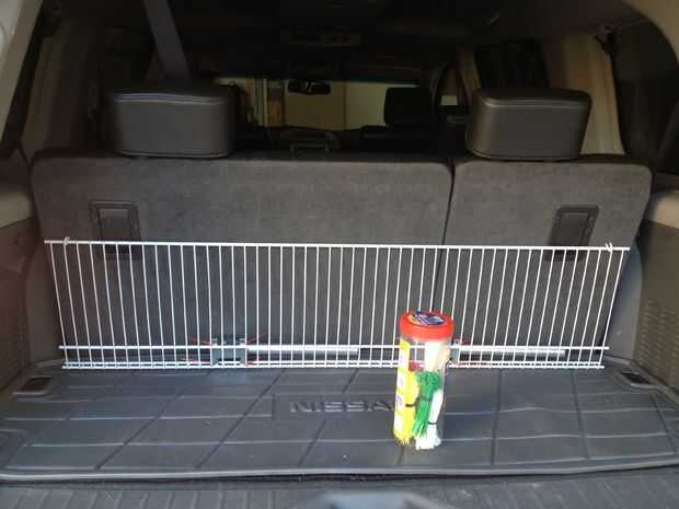1. Armario rejilla abierta - compré un 48" pedazo de Home Depot que encajan perfectamente en mi tronco ($6,00)