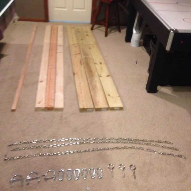 Para este proyecto necesita 2 x tres 6 y tres de 2 x 4 3: cuatro pies de largo (o por lo menos 3 1/2 pies) 6: clips de metal 3: pernos de ojo 3:U pernos (1 x 2 es opcional para los bordes)