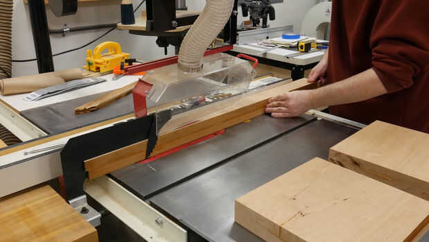 Ahora que el pegamento se haya secado en los soportes y la camilla, les corté a la medida en la Sierra de mesa. Las dimensiones son las siguientes: