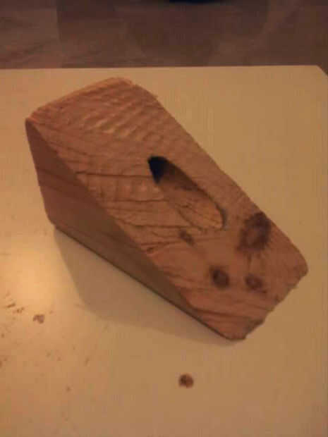 El resultado debe ser una especie de cuña con un agujero va a través de ella (ver foto).