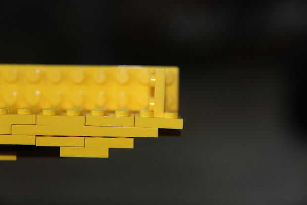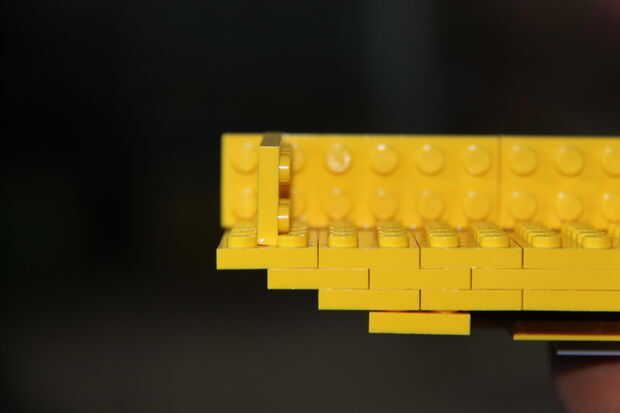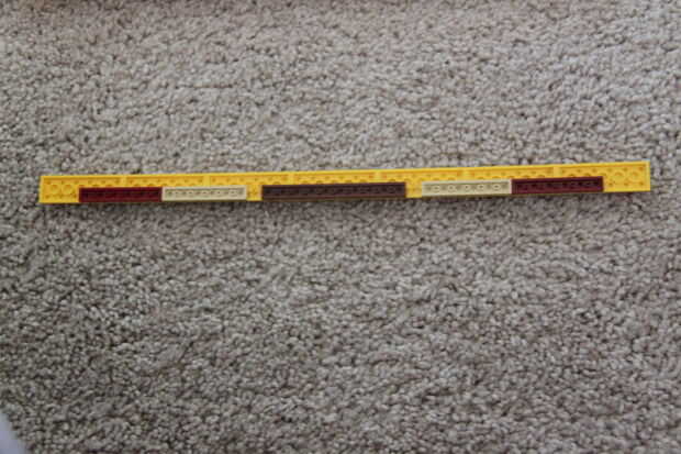 El carril mantiene objetos de caerse el lado y le da un aspecto agradable. He utilizado 7 -6 x 2, 2 -4 x 2, 4 -6 x 1 y 1 -8 x 1. Coloque el travesaño entre las dos últimas filas de protuberancias. Coloque el riel lateral (pieza de 4 x 2) a cada lado. Ver fotos.