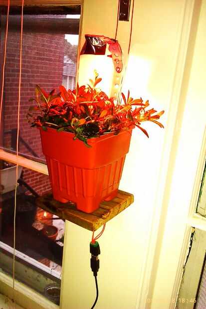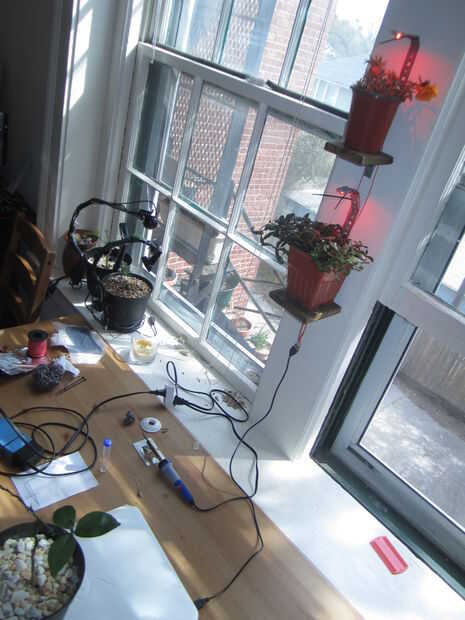 Tengo 2 LEDs de alta potencia, cada uno son 660nm, están conectados en serie que suman 5V cada LED es 2.5-2.7 dijo el embalaje. obtuvieron de Ebay para $8/10pack. Según mi investigación sobre puertos USB, que dan a 5V pero mA da se ajusta según sea necesario, para que cuando enchufo estas luces a mi portátil, al principio son más brillantes para como medio segundo, probablemente recibiendo 500mA en ese momento, entonces el portátil reduce a 350mA. que debe estar bien. que emiten sin calor qué tan nunca. la planta en la parte superior ya se duplicó en tamaño y preparándose para la floración, dentro de 7 días, quizá menos 5...