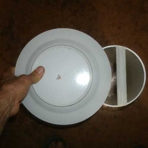 En la etapa del patrón del papel, sospeché quería un agujero en forma de media luna, pero no sabía cómo dibujar en ese momento, así que hizo el patrón de los agujeros rectangulares y trazada en las formas de media luna más tarde por el ojo. Después boicoteando un agujero, me puse derecha y había copiada por los otros orificios. El punto en la parte inferior de la forma de media luna ayuda a sostener firmemente la parte inferior de la placa. Si el corte era la forma del rectángulo, la parte inferior de la placa podría cambiar, cambiando el ángulo en que se lleva a cabo. Quería que el ángulo de retención a ser la misma en todas las placas.