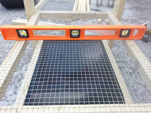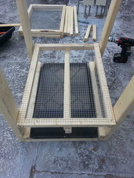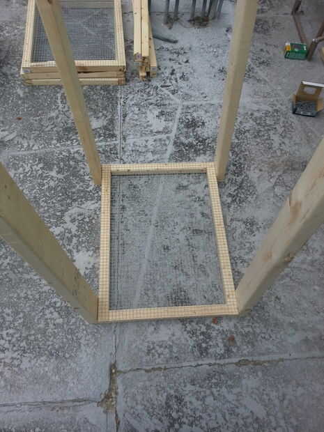 Ahora ya tienes tu primer compartimiento hecho para aprovechar el espacio para la ventana 2 º en 2 de las 28" tiras para equilibrar mi ventana siguiente va en la parrilla. Otra vez malla hacia arriba lugar su siguiente ventana línea y nivel todo, Pretaladre los agujeros para tornillos de 2-1/2" y apretar todo.